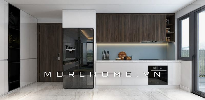 Thiết kế nội thất phòng bếp riêng biệt với không gian khác vẫn đảm bảo tính sang trọng và tiện nghi của không gian