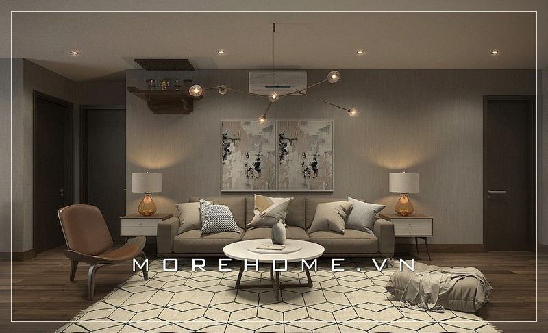 Mẫu sofa phòng khách hiện đại sử dụng tone màu nâu ấm cúng và sang trọng cho phòng khách chung cư