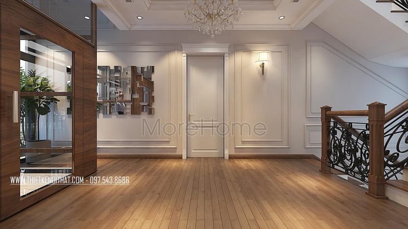 Để tạo nên sự sang trọng và tinh tế cho không gian, hãy sử dụng mẫu cửa gỗ tự nhiên và phun sơn màu trắng.