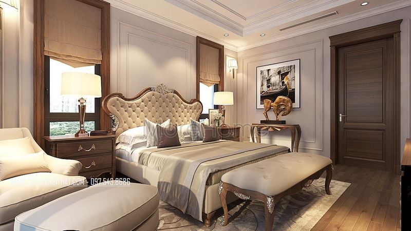 Tôi đang tìm kiếm một mẫu cửa gỗ óc chó phù hợp với phòng ngủ tân cổ điển biệt thự của mình.