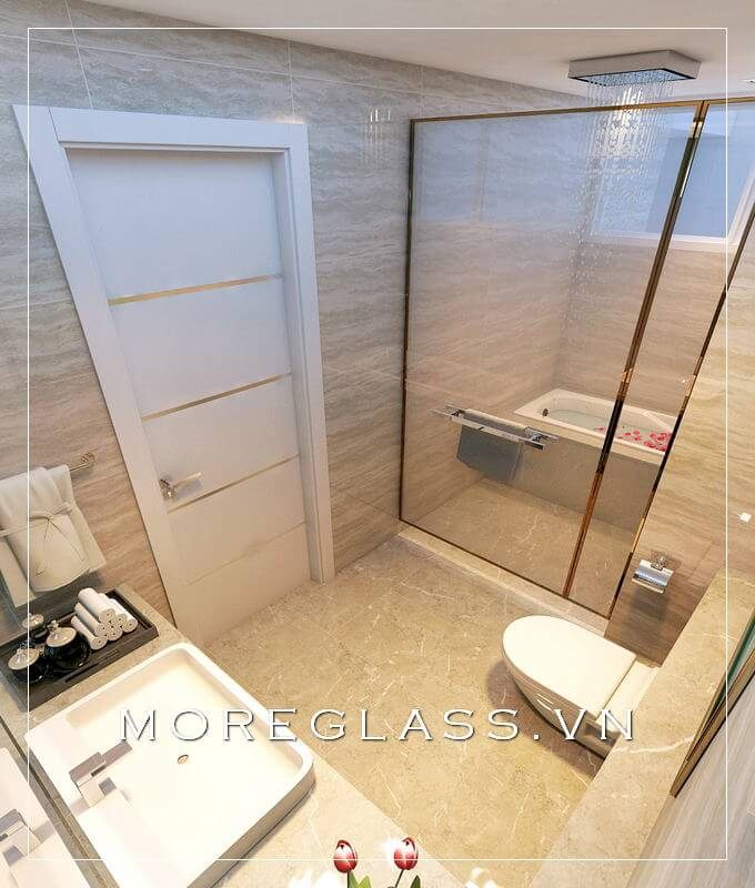 Thiết kế phòng tắm cho căn hộ hiện đại với sự kết hợp của các vật liệu như gạch và kính sẽ tạo ra không gian thoáng đãng và rộng rãi.