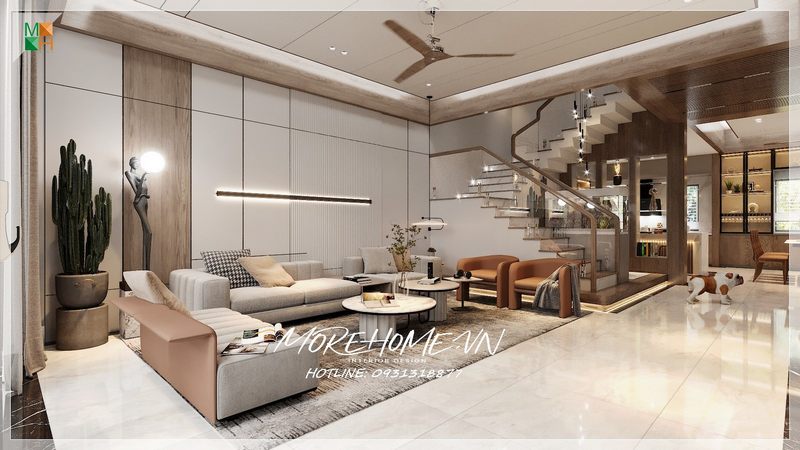 Khi áp dụng xu hướng thiết kế hiện đại vào phòng khách, việc kết hợp giữa các vật liệu tự nhiên như gỗ và đá sẽ mang lại cảm giác gần gũi mà vẫn sang trọng. Những món đồ nội thất được thiết kế với đường nét sạch sẽ cũng như hình khối độc đáo sẽ tạo ra một không khí mới mẻ và thu hút ánh nhìn ngay từ lần đầu tiên bước vào. Hãy cân nhắc việc sử dụng thêm ánh sáng tự nhiên qua cửa sổ lớn hay các giải pháp chiếu sáng thông minh để tăng cường không gian mở và tạo cảm giác thoáng đãng cho căn phòng của bạn.